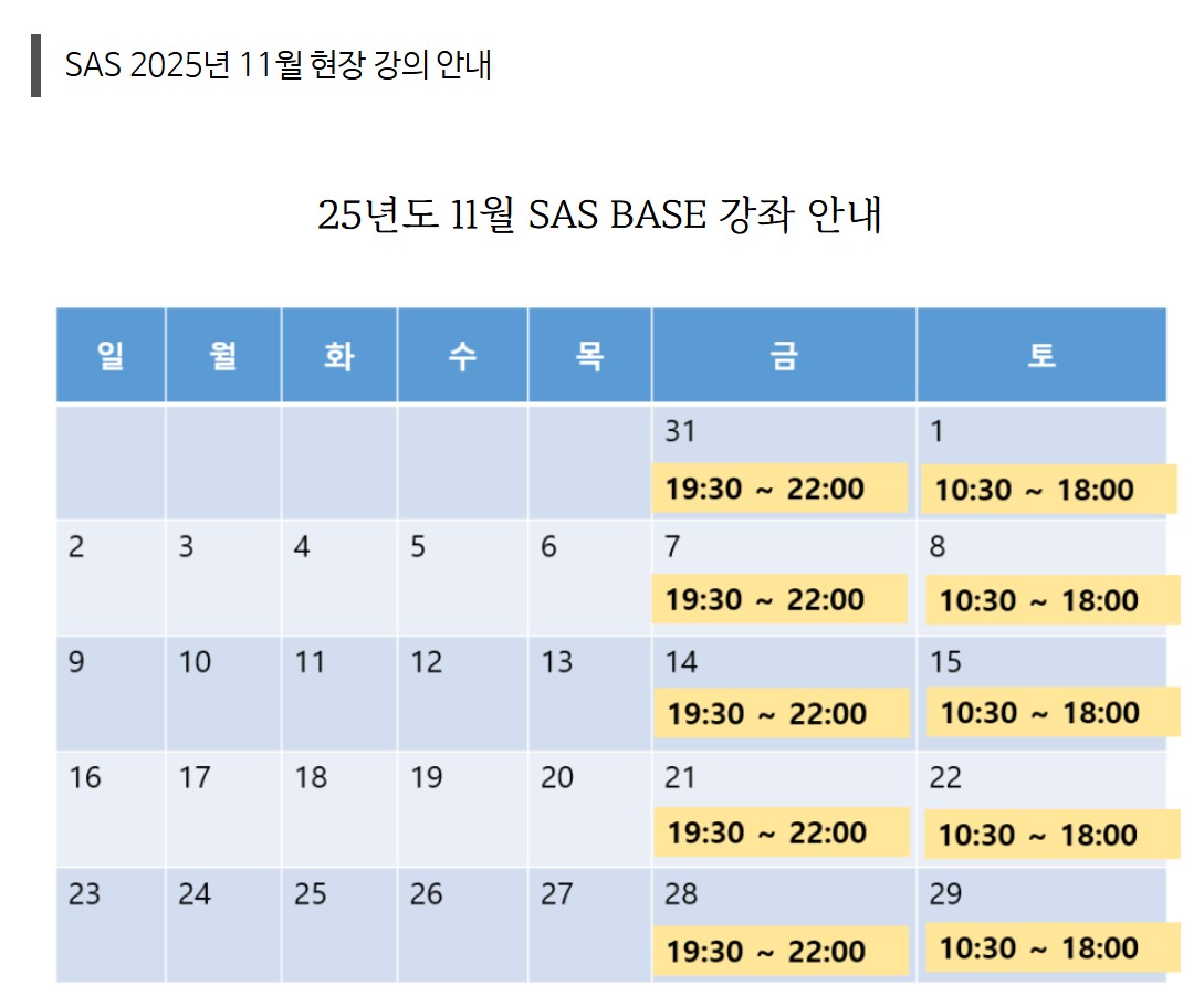 • SAS BASE 자격증 반 | 25.11 현장강의 (책 포함)